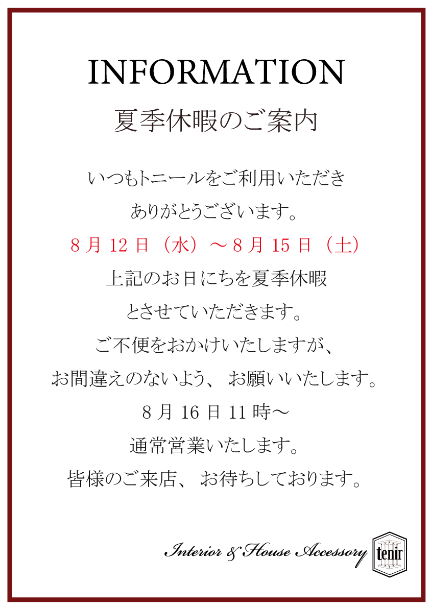 夏季休暇のご案内